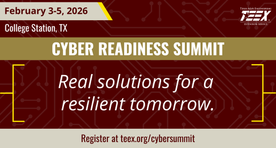 Registration for the 2026 TEEX Cyber Readiness Summit is now open at teex.org/cybersummit. All professionals who play a role in cybersecurity, technology, emergency management, or community protection are encouraged to attend and participate in this collaborative effort to strengthen readiness across Texas.